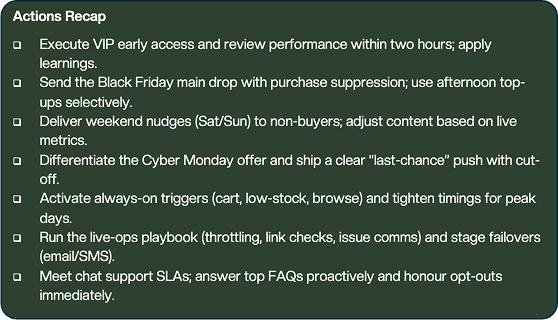 Send a message like: “Hey [Name], you’re one of our VIPs. Here’s your exclusive 24-hour early access to our BFCM sale 🖤”