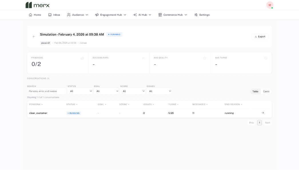 The Merx Simulator gives teams a way to understand how their AI will behave in the real world, at real scale, before customers are involved.
