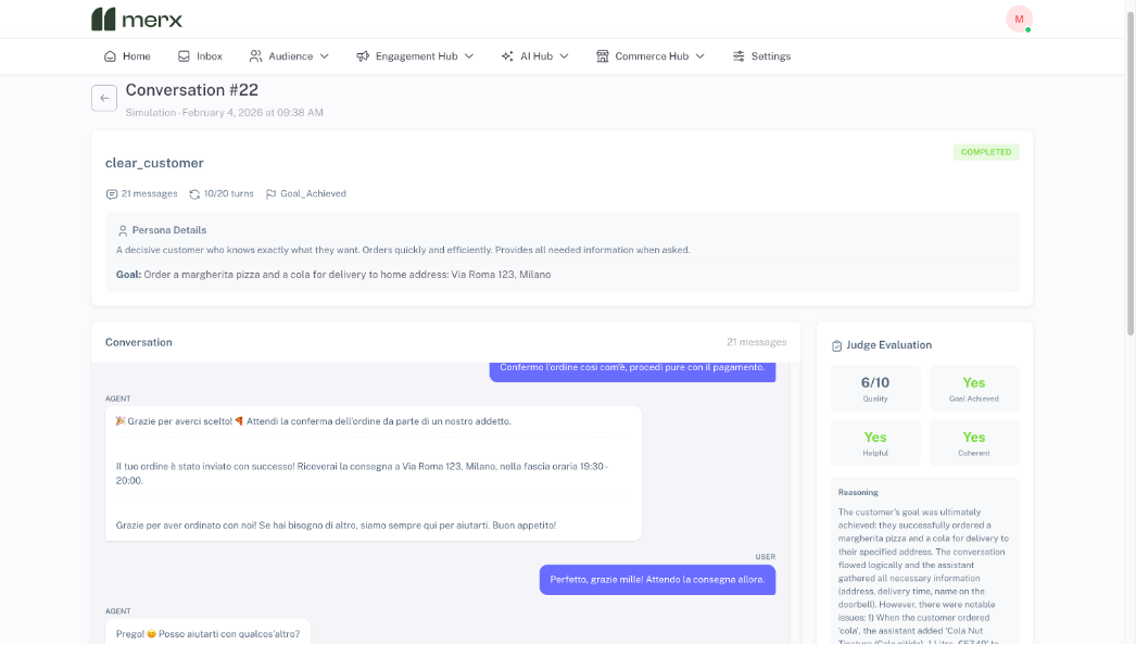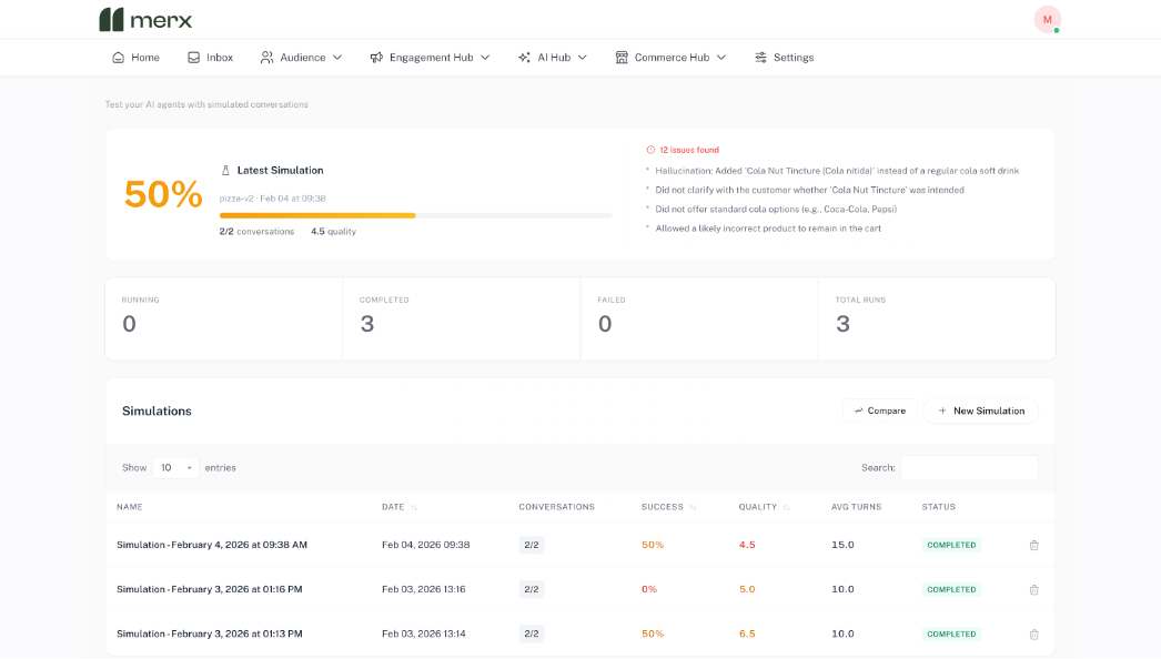 The Merx Simulator is designed to test AI agents the way customers actually use them.